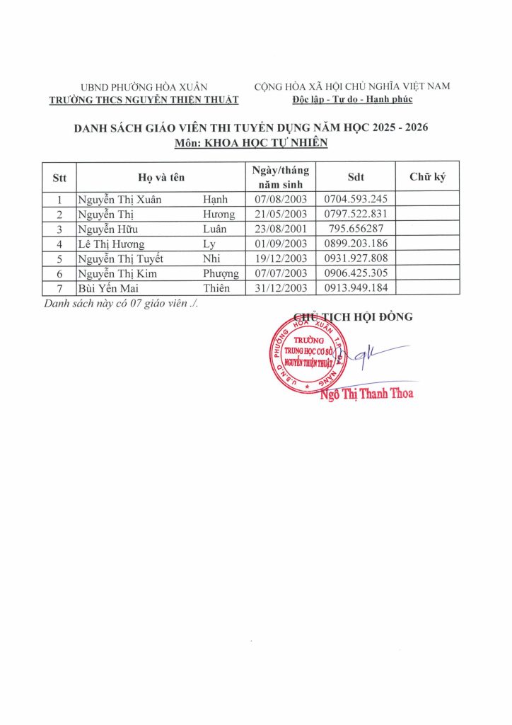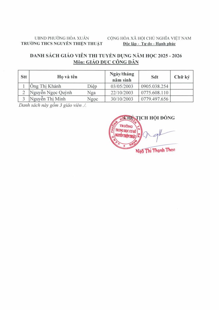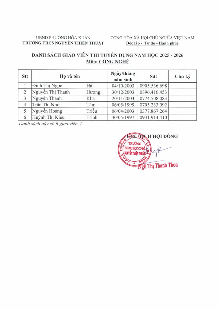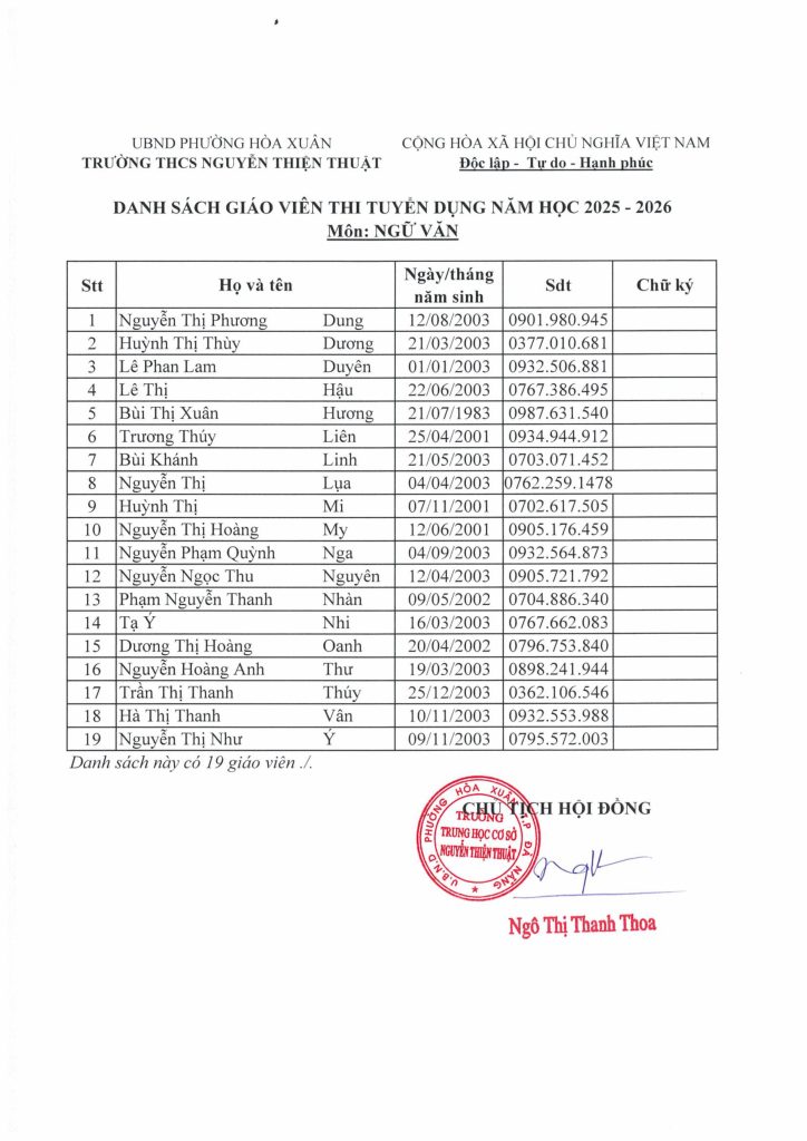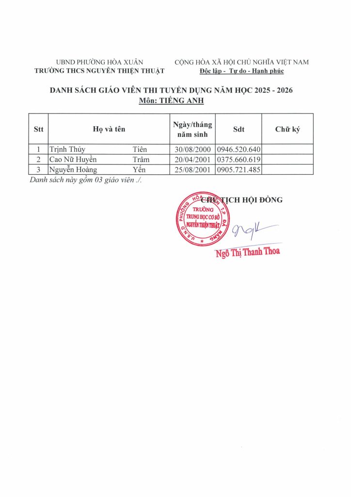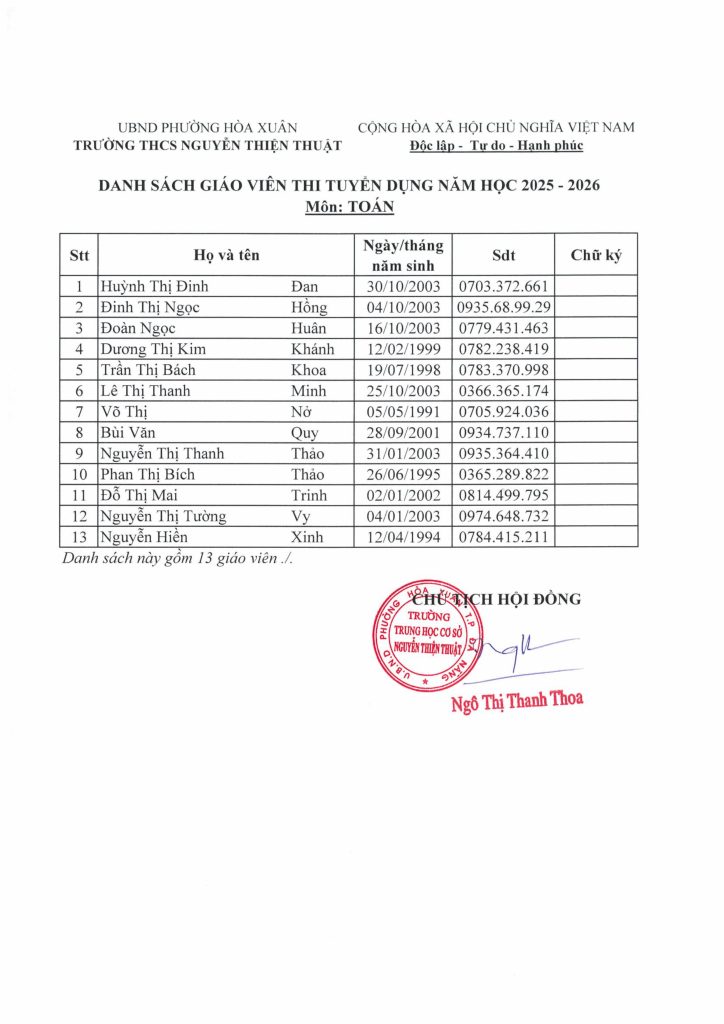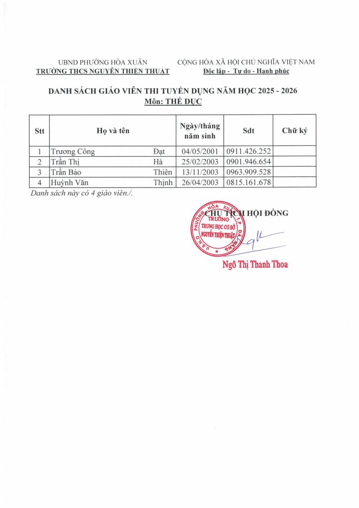 Danh sách giáo viên thi tuyển dụng năm học 2025 – 2026