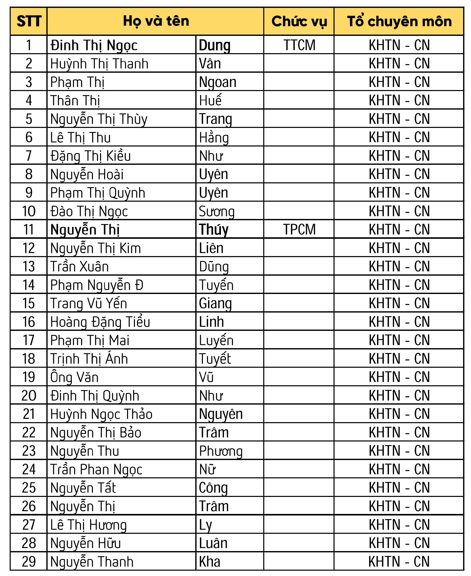 GIỚI THIỆU TỔ KHOA HỌC TỰ NHIÊN - CÔNG NGHỆ
