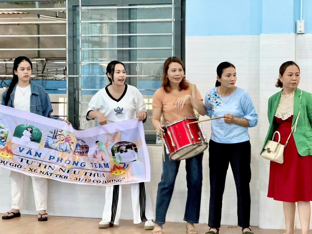 Ngay từ sáng 15/11/2025, Nhà đa năng của trường đã rộn ràng hơn mọi ngày. Những tiếng hò reo cổ vũ, những tràng pháo tay, những nụ cười rạng rỡ theo từng đường bóng đã khiến không khí trở nên thật tưng bừng. Các vận động viên là thầy cô – những người vốn quen với bảng đen, phấn trắng – nay lại hiện lên thật khác lạ: nhiệt huyết, nhanh nhẹn, máu lửa và vui hết mình.
