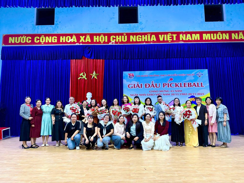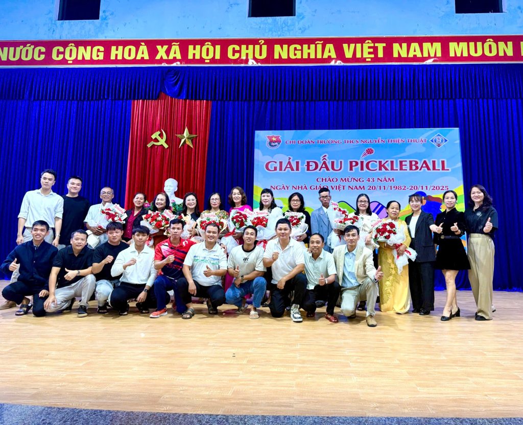 Hướng đến kỷ niệm 43 năm Ngày Nhà giáo Việt Nam 20/11, Trường THCS Nguyễn Thiện Thuật đã tổ chức một ngày hội đầy sắc màu với hai hoạt động nối tiếp nhau: Giải Pickleball hữu nghị và Lễ tri ân 20/11. Nếu giải đấu mang đến không khí sôi nổi – trẻ trung – tràn đầy tiếng cười, thì buổi tri ân lại gợi lên sự sự thân thương, ấm áp và chan chứa nghĩa tình thầy trò.