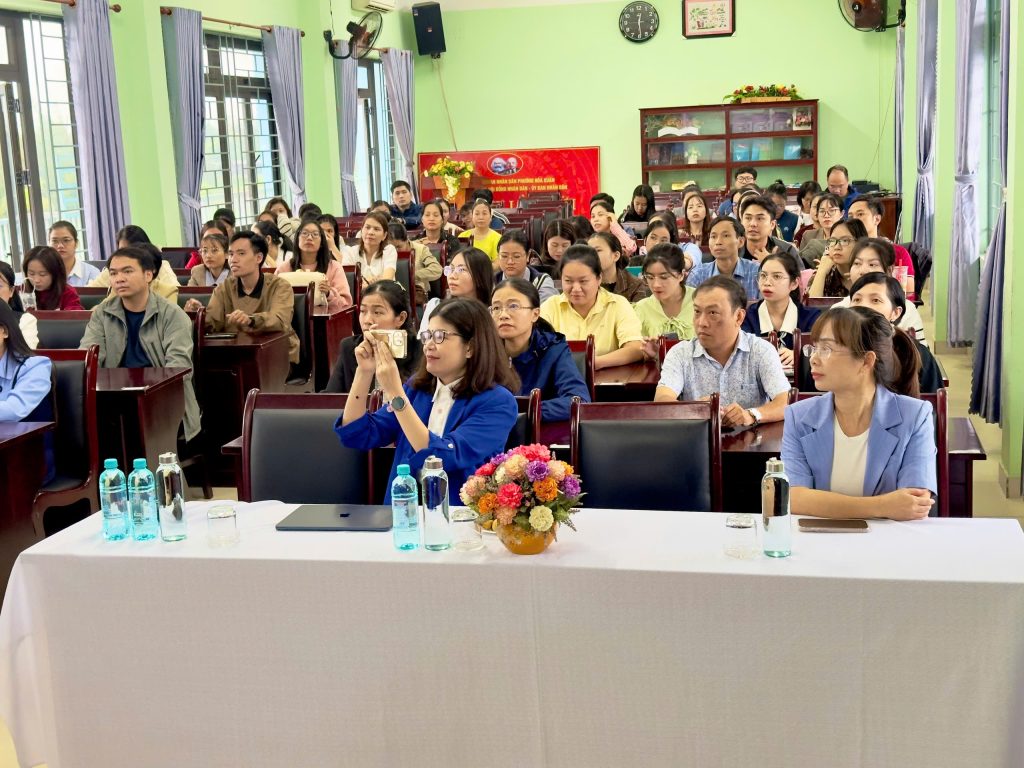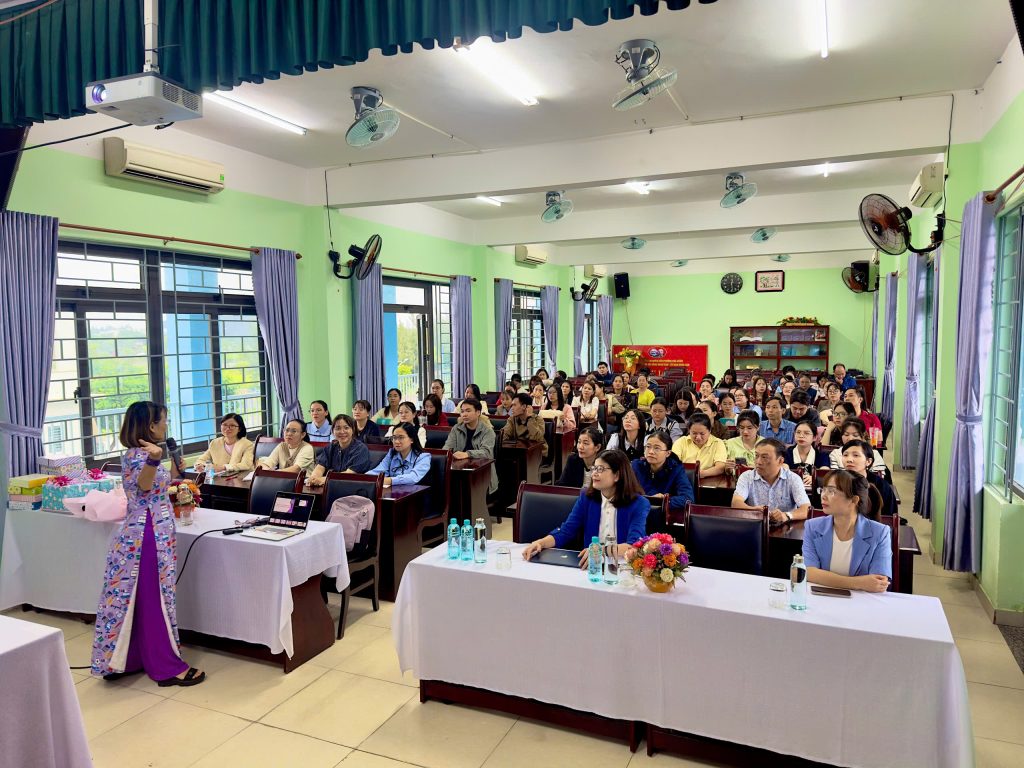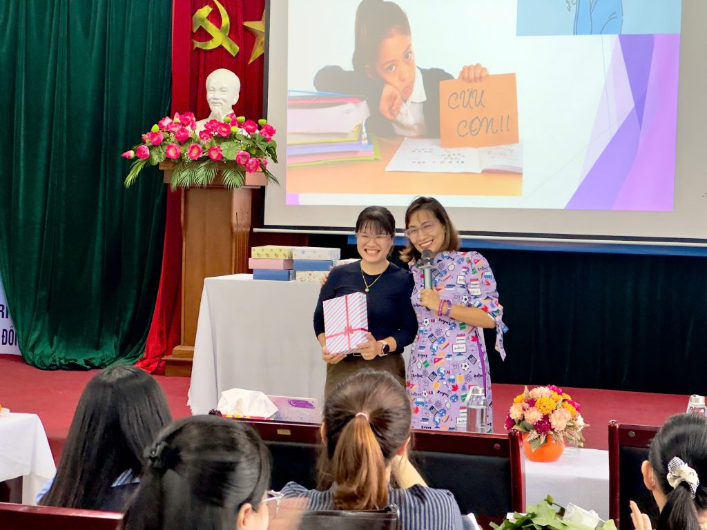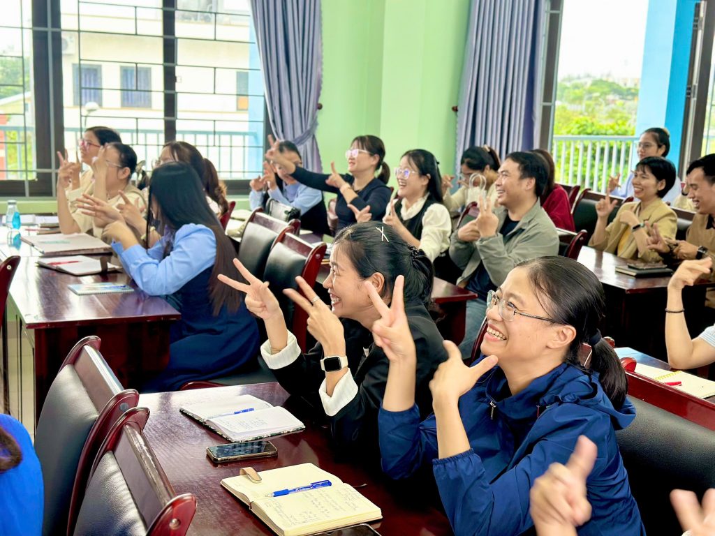 Khép lại chuỗi chuyên đề là “Hành trình gieo hạt” – phần nội dung đọng lại nhiều cảm xúc nhất. Báo cáo viên dẫn dắt bằng những nghiên cứu khoa học, cho thấy tác động mạnh mẽ của lời nói, thái độ và cảm xúc tích cực trong việc nuôi dưỡng tâm hồn con người. Thông điệp được gửi gắm giản dị mà sâu sắc: hãy bắt đầu từ chính mình, hãy gieo những hạt giống tốt lành bằng yêu thương và niềm tin mỗi ngày. Xen kẽ chương trình là các hoạt động tương tác, chia sẻ kinh nghiệm sôi nổi cùng những phần quà trao tay, đã tạo nên không khí ấm áp, gần gũi. Qua buổi tập huấn, mỗi giáo viên đều thêm vững tin và được truyền năng lượng tích cực để tiếp tục giữ ngọn lửa đam mê, lan tỏa yêu thương, cùng nhau xây dựng một môi trường học đường hạnh phúc và nhân ái.