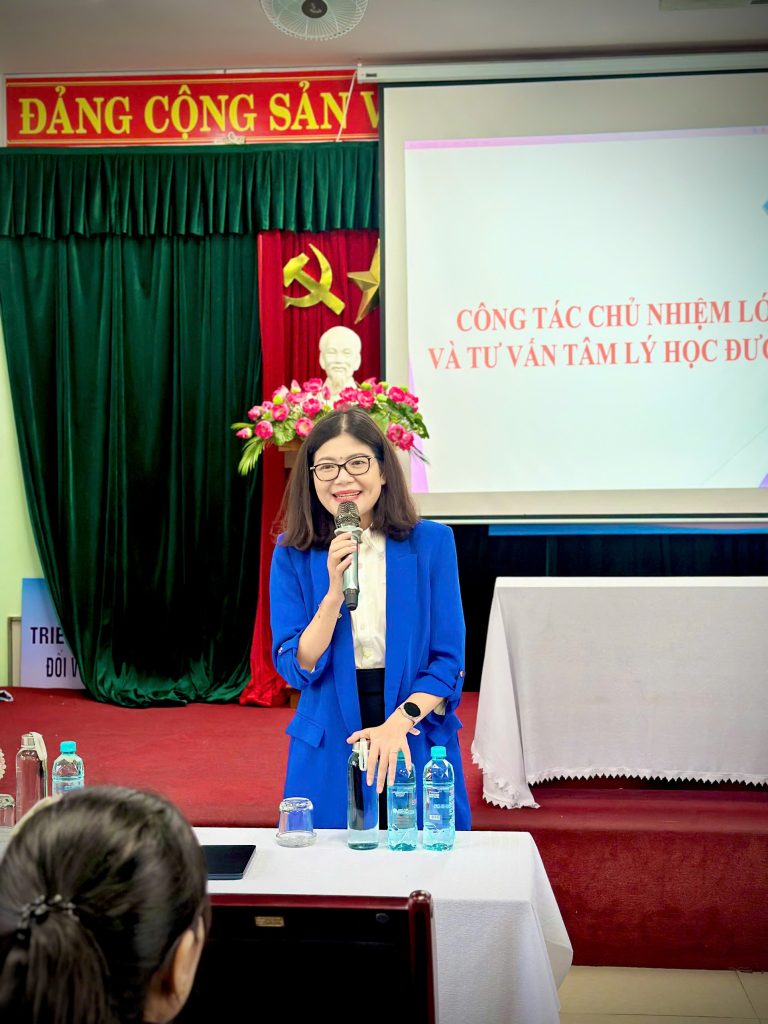 Tiếp nối chương trình, chuyên đề “Đặc điểm tâm lý học sinh” giúp giáo viên hiểu rõ hơn đặc điểm phát triển của lứa tuổi thiếu niên – giai đoạn nhiều biến đổi về thể chất và cảm xúc. Qua phần trình bày của các báo cáo viên, thầy cô được bồi dưỡng kỹ năng lắng nghe, thấu hiểu và định hướng hành vi tích cực cho học sinh, góp phần xây dựng mối quan hệ gần gũi, thân thiện giữa thầy và trò.