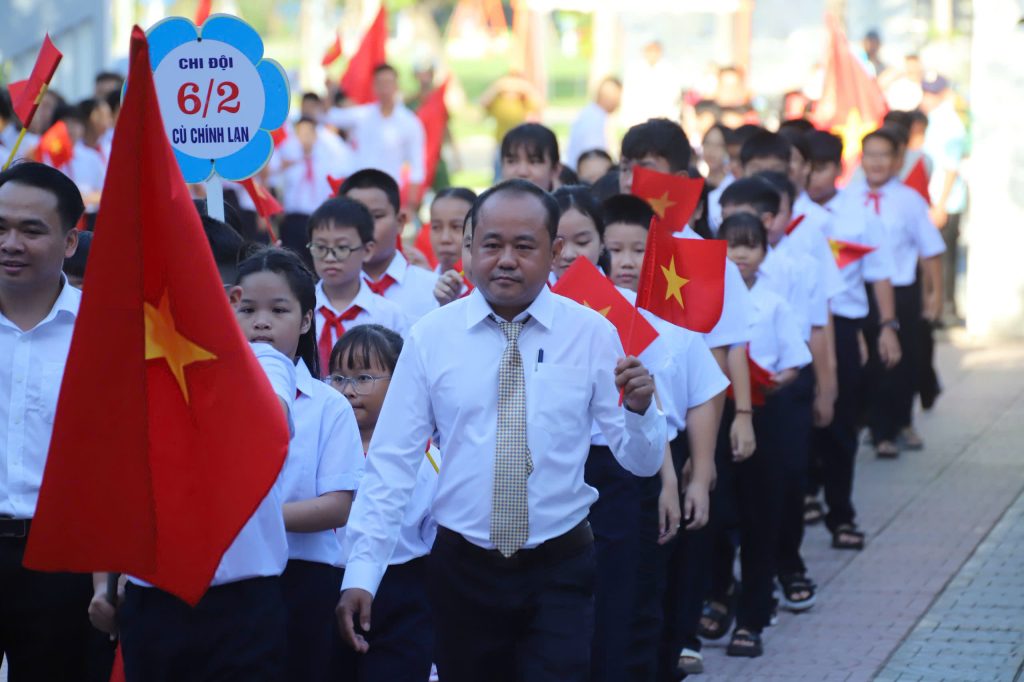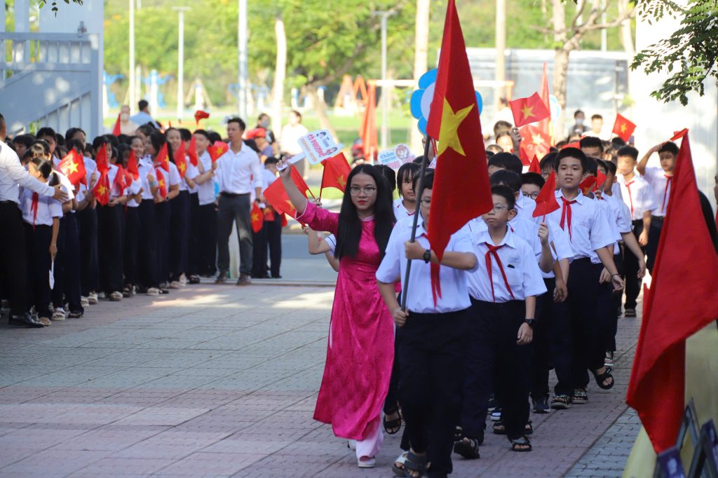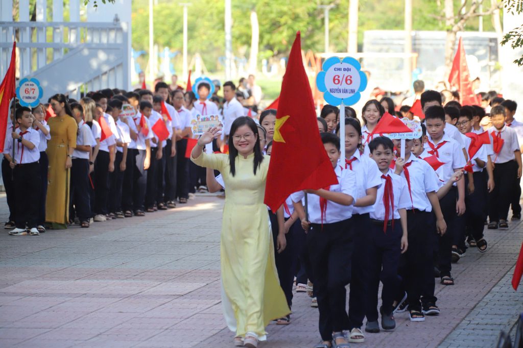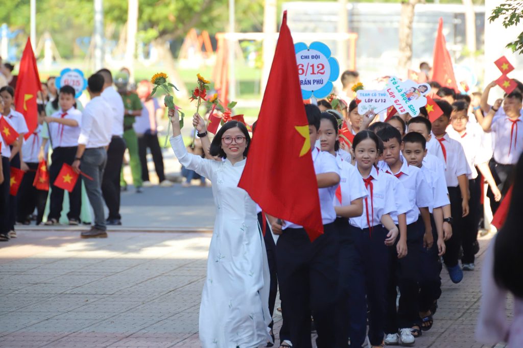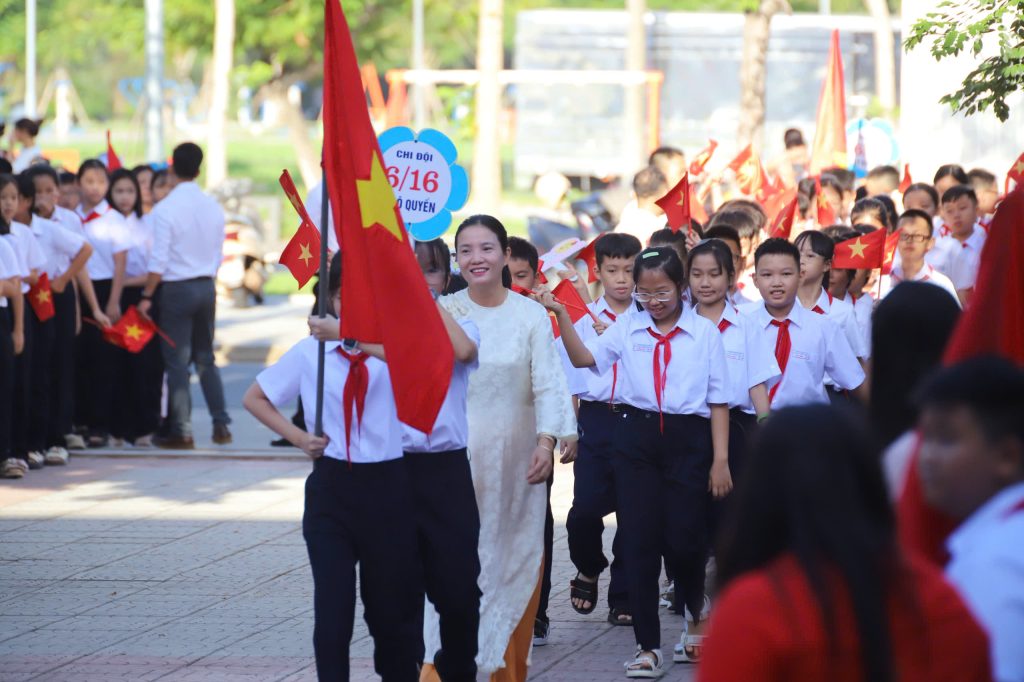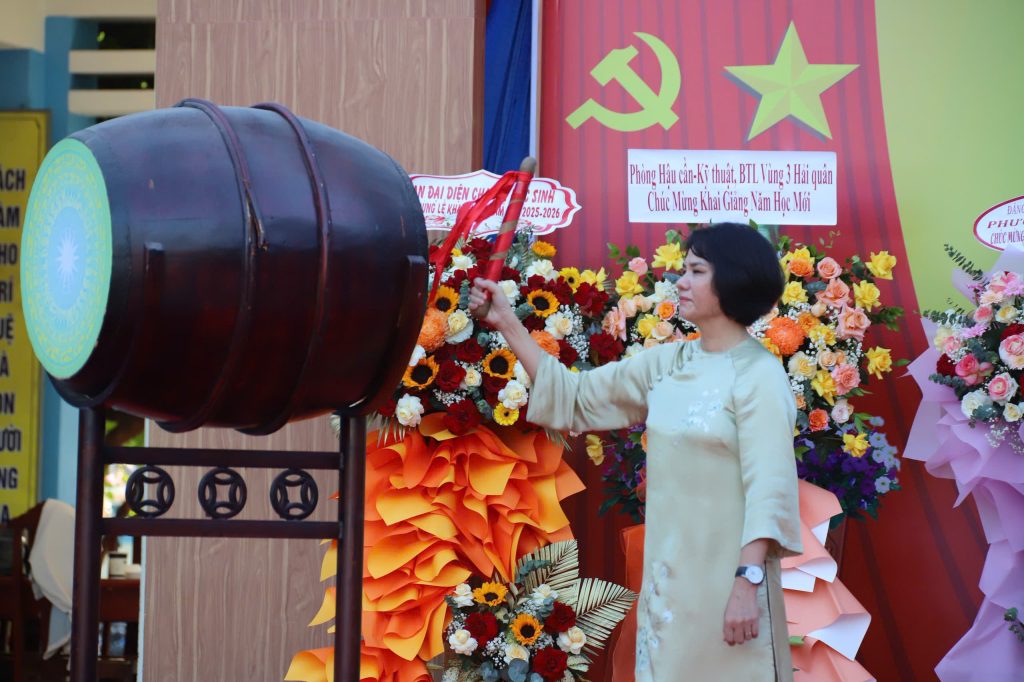 Ngay sau đó, ba hồi trống khai trường được cất lên, dội vang cả không gian. Âm thanh ấy chẳng khác nào nhịp tim của năm học mới, nhắc nhở mỗi học sinh: học không chỉ để thành đạt cho bản thân, mà còn để dựng xây non sông, chấn hưng đất nước.