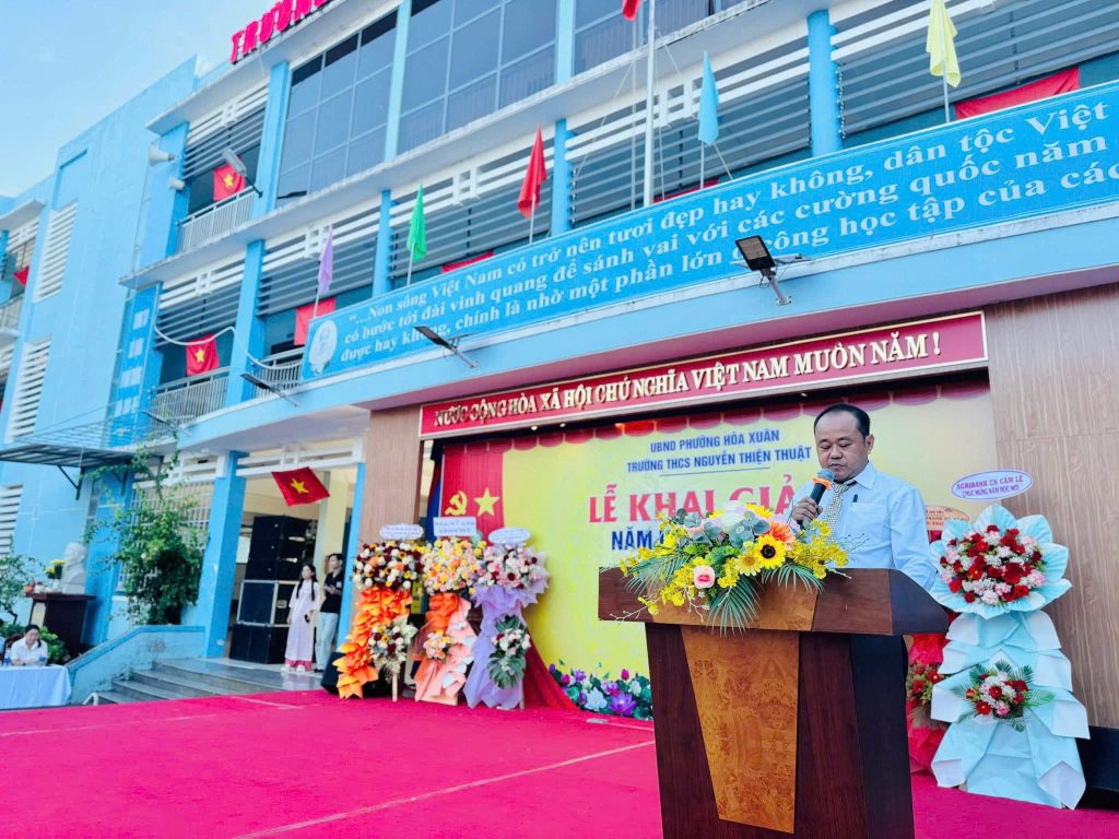 Trong buổi khai giảng, nhà trường vinh dự chào đón sự hiện diện của Ông Nguyễn Văn Hùng – Thành ủy viên, Bí thư Đảng ủy, Chủ tịch HĐND phường Hòa Xuân; Bà Trần Thị Thúy Hà – Đảng ủy viên, Trưởng phòng Văn hóa – Xã hội phường Hòa Xuân, cùng đại diện Phòng Hậu cần – Kỹ thuật Vùng III Hải quân, Trung tâm Huấn luyện & Đào tạo VĐV TDTT Đà Nẵng, Quỹ học bổng Hồ Điền và nhiều đơn vị, doanh nghiệp đồng hành với nhà trường. Buổi lễ còn có sự tham dự của ông Võ Văn Cứ – Trưởng ban đại diện Hội CMHS nhà trường và các Ông Bà trong ban đại diện Hội CMHS cùng đại biểu đại diện CMHS 71 lớp.Về phía nhà trường, có sự hiện diện của Cô giáo Ngô Thị Thanh Thoa– Bí Thư chi bộ – HT nhà trường cùng 149 cán bộ, giáo viên, nhân viên3113 học sinh của trường cũng có mặt đông đủ, tạo nên bầu không khí trang trọng, ấm áp và đầy ý nghĩa.