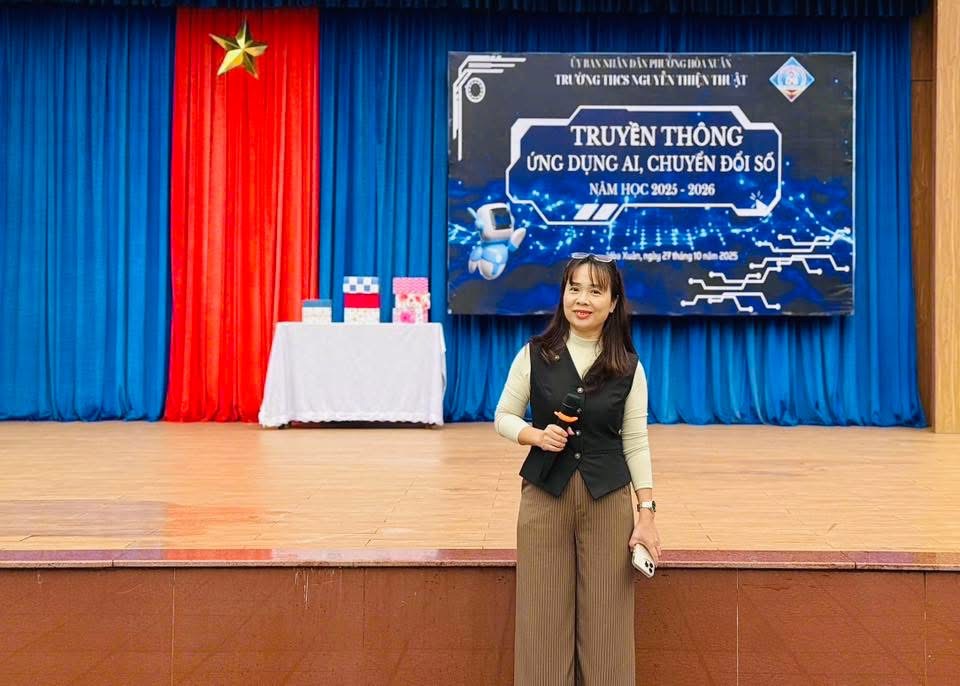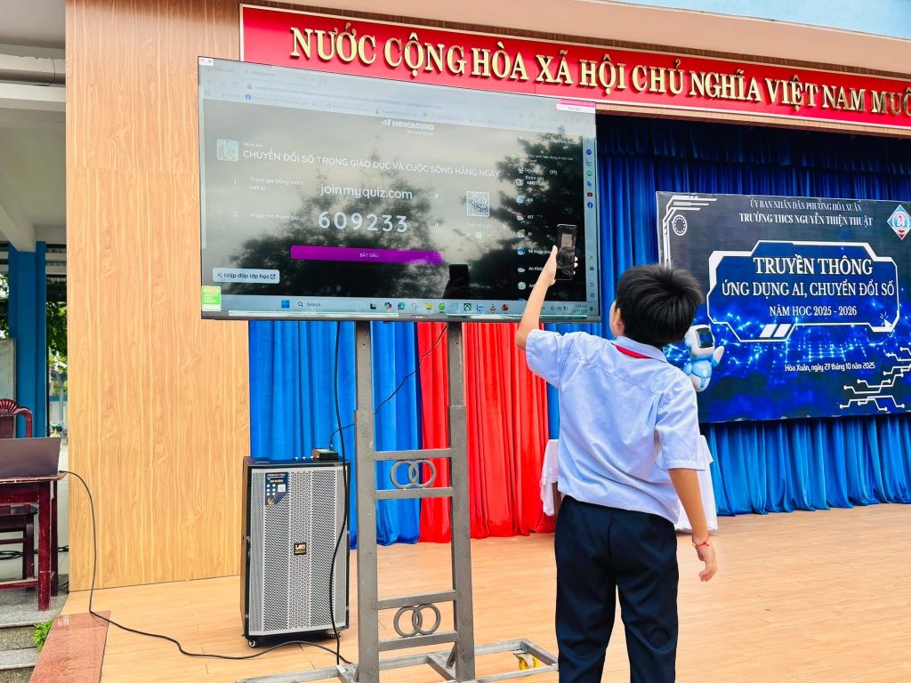 Trong bối cảnh cuộc cách mạng công nghiệp 4.0 diễn ra mạnh mẽ, chuyển đổi số đã trở thành xu thế tất yếu của ngành giáo dục. Nhằm đưa công nghệ hiện đại đến gần hơn với học sinh và xây dựng môi trường học tập tiên tiến, sáng ngày 1/12/2025, Trường THCS Nguyễn Thiện Thuật đã tổ chức Ngày hội “Chuyển đổi số – Ứng dụng AI trong học đường”, mang đến cho học sinh những trải nghiệm mới mẻ, độc đáo và giàu giá trị giáo dục.