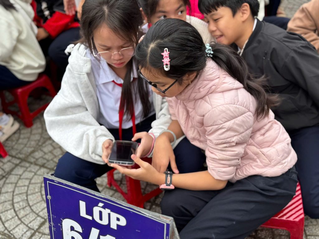 Khép lại chương trình là phần chạy trạm – quét mã QR, đưa học sinh bước vào hành trình khám phá những ứng dụng AI thực tế: nhận diện hình ảnh, phân tích câu hỏi,… Các em vừa vận động, vừa tìm hiểu, vừa ứng dụng tư duy công nghệ để hoàn thành nhiệm vụ ở từng trạm. Hoạt động không chỉ rèn luyện kỹ năng số mà còn xây dựng thói quen chủ động học hỏi – phẩm chất quan trọng của công dân số tương lai.